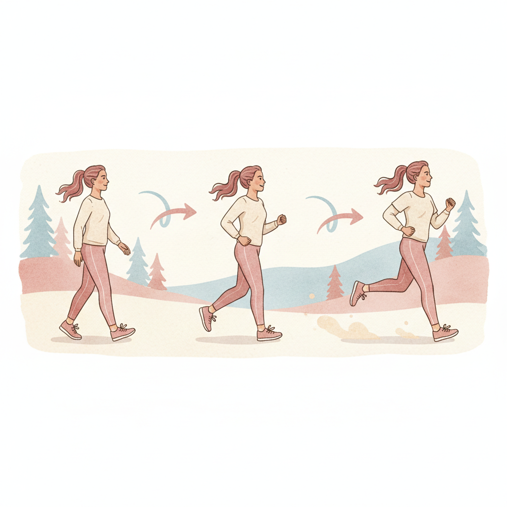 Steg-for-steg løpeprogram etter fødsel. Fra de første gåturene til din første 5K — med beredskaptstest, intervaller og ukentlig plan.