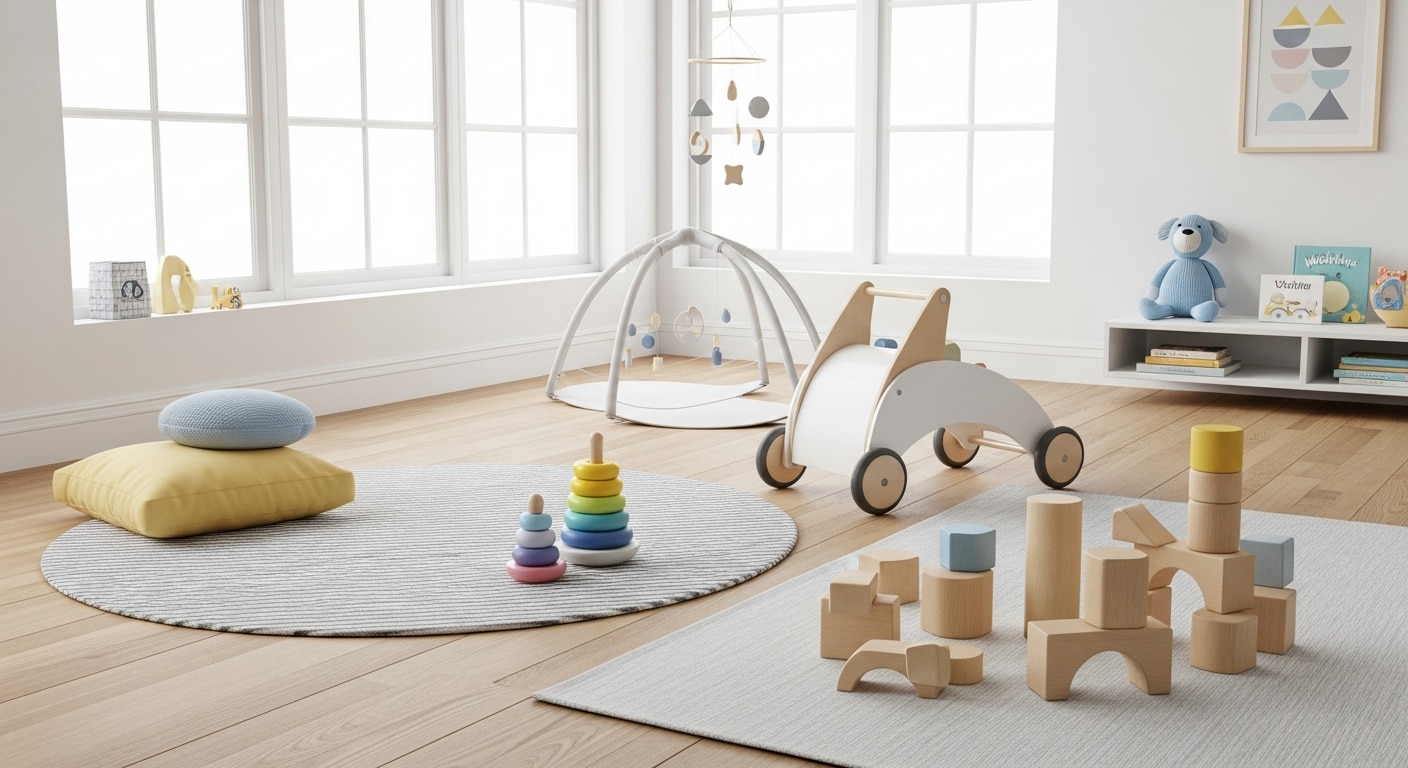 Guide til de beste lekene for babyer 6-12 måneder. Fra krabbing til første skritt - utviklingstilpassede leker fra norske butikker.